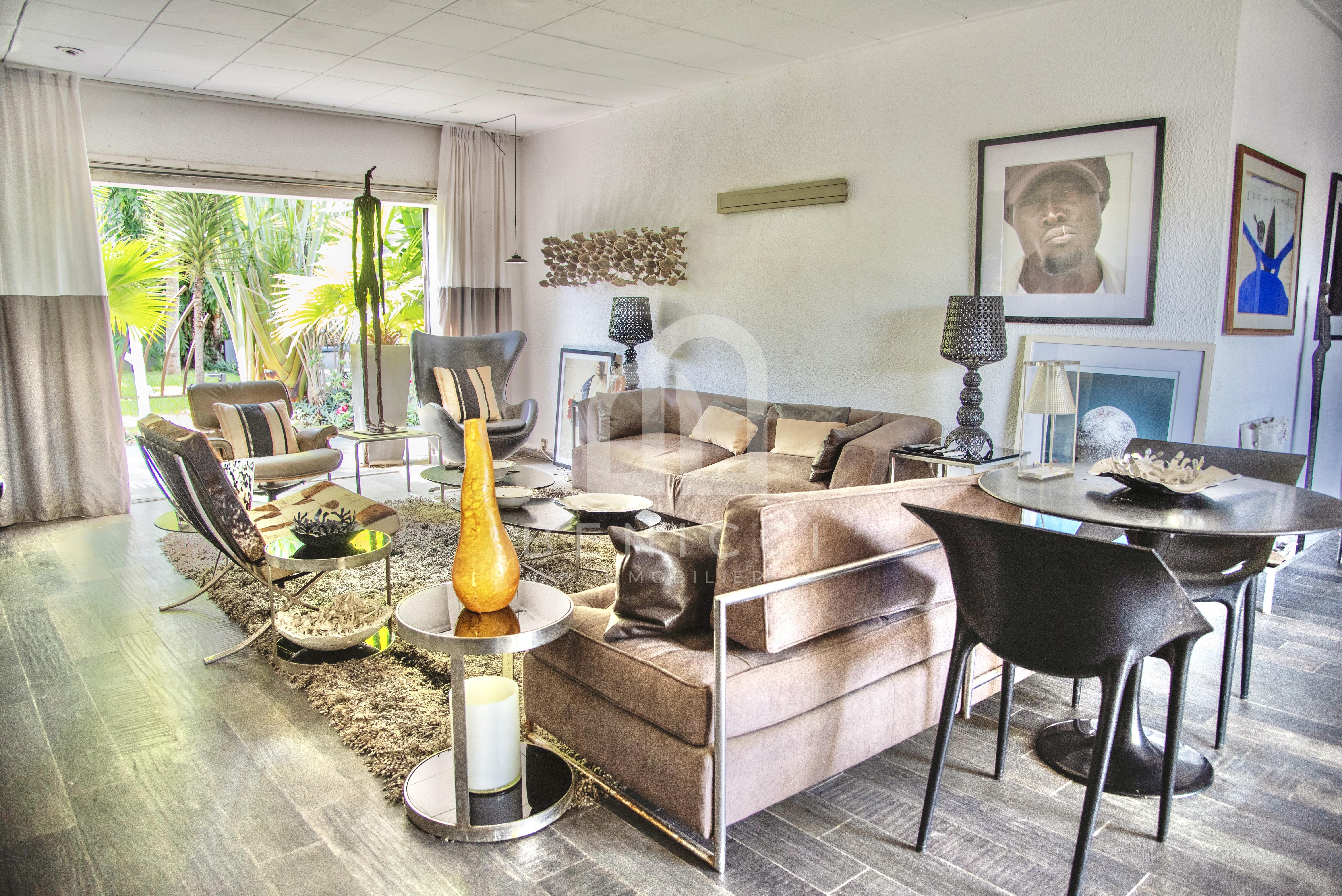 Avec ses espaces de vie lumineux et traversant, donnant sur un jardin paysager, agrémenté d’œuvres d’art et d’objets artistiques, cette villa éveillera vos sens à chaque pas.
